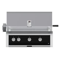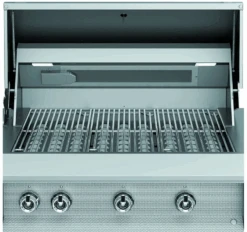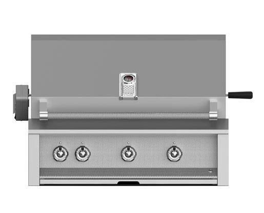 Hestan Aspire grills are made in the USA from heavy-duty American steel and feature heavy-duty welded body construction with commercial grade end caps, Zamak die cast knobs & bezels and Hestan Marquise accented control panels and hood handles. The Aspire 36-Inch Built-In Gas Grill features two high-performance tubular U-burners.