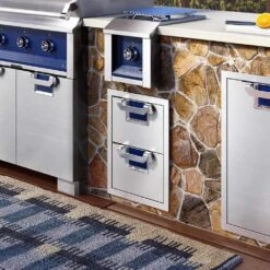 Aspire by Hestan AEDR16 Double Storage Drawers, 16-Inches provides a high quality grill component to complete your perfect outdoor kitchen. The 16-inch full extension, sliding double drawer storage unit features a stainless steel construction for a blend of style and durability that will stand up to the outdoor elements. The hinges ensure easy opening and closing of the double drawers that offer convenient storage opportunities and also feature commercial-grade handles and recessed Marquise accented panels to complement the beauty and function of the Hestan Aspire line.