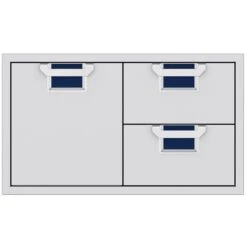 Aspire by Hestan AESDR36 Double Drawer and Storage Door Combo, 36-Inches provides a high quality grill component to complete your perfect outdoor kitchen. The 36-inch double drawer and storage door combo features high quality stainless steel construction for a blend of style and durability that will stand up to the outdoor elements. The hinges ensure easy opening and closing of the doors that offer convenient storage opportunities. This unit also features commercial-grade handles and the recessed Marquise accented panel to complement the beauty and function of the Hestan Aspire line.