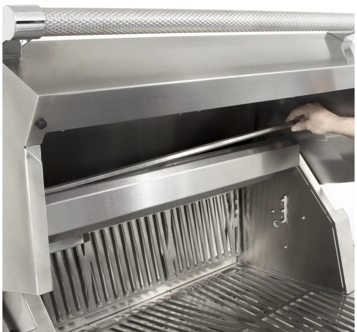 - Patent-pending multi-purpose built-in ceramic infrared rotisserie / searing / finishing burner AT 14,000 BTUs with simple touch on function