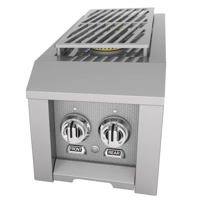 Hestan AGB122 Double Side Burner combines robust durability, unparalleled performance and elegant craftsmanship to forge one of the most advanced grill accessories available. The 20,000 BTU brass burner works together with the 10,000 BTU rear brass burner to create an ultra high quality unit that features a 5/16-inch thick DiamondCut Grate for tremendous heating performance and side dish preparation possibilities while the electronic ignition system has a useful re-ignition capability. To add to it’s versatility, this double side burner can be built-in to your outdoor kitchen island or mounted on a Hestan grill cart. The unit includes front panel LED lighting and a sealed burner bowl with a drain that protects from over-boiling and spills while the stainless steel cover provides ultimate protection from the elements.