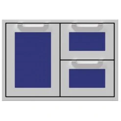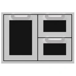 Hestan AGSDR30 Double Drawer and Storage Door Combo, 30-Inches provides a high quality grill component to complete your perfect outdoor kitchen. The double door and full extension sliding drawer combo features a welded stainless steel construction for a blend of style and durability that will stand up to the outdoor elements. The soft-close hinges ensure easy opening and closing of the doors that offer convenient storage opportunities while the motion activated interior lighting provides great visibility during evening grill sessions and entertainment. This accessory also features commercial-grade handles and the recessed Marquise accented panel to complement the beauty and function of the Hestan line.