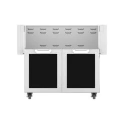 Hestan GCD36 Double Door Cart, 36-Inches combines superior durability and performance with contemporary design to bring you a storage friendly double door grill cart for use with your Hestan 36-inch gas grill head. The stainless steel body offers top of the line durability and longevity while the folding side shelves offer sufficient space for food prep and the double doors feature recessed, Marquise accented panels and commercial-grade handles. The cart doors are soft-closing and feature alignment adjustability. The included sliding pullout tray makes it easy to access the gas tank or provide an open space for trash while the commercial-grade casters make easy movement and 360-degree maneuverability possible. A carbon fiber vinyl cover is available to purchase separately. Finish off your freestanding grill unit with this versatile double door cart from Hestan.